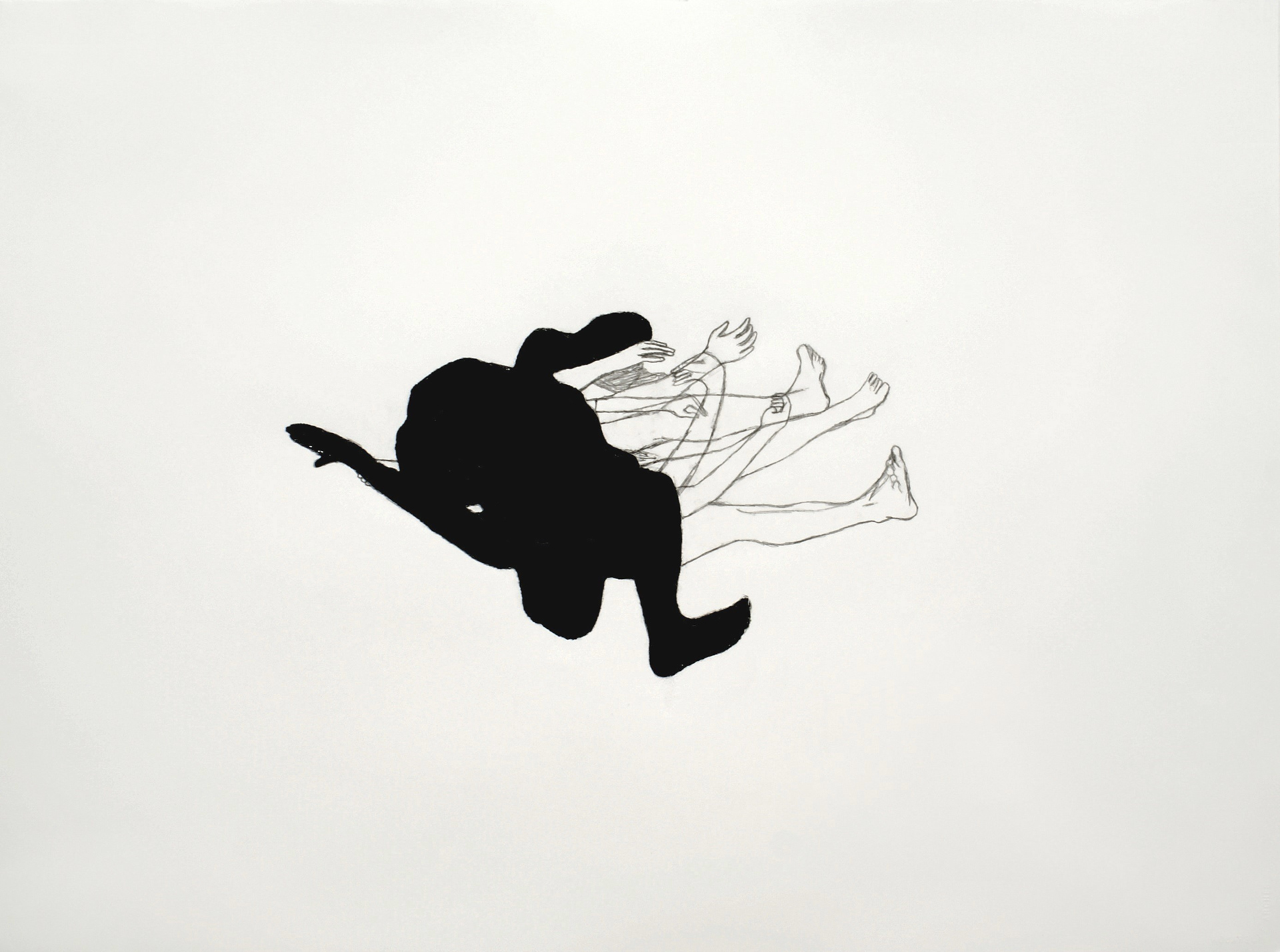 Corps étranges, technique mixte sur papier Arches, 56 x 76 cm, 2010.